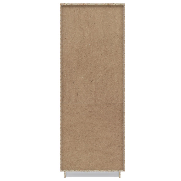 Frontul vitrinei este decorat cu elemente din MDF și folie lucioasă PVC, oferind un aspect sofisticat și plin de strălucire. Culoarea alb super lucioasă creează un efect de oglindire, adăugând lumină și deschidere în interiorul camerei tale. În același timp, stejarul Nelson adaugă un contrast subtil și o notă de modernitate.