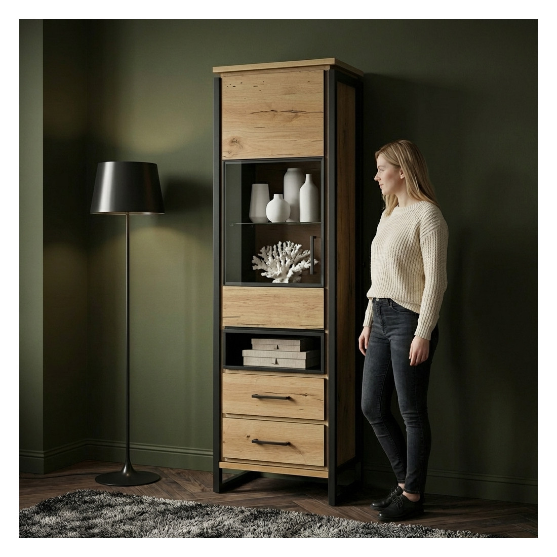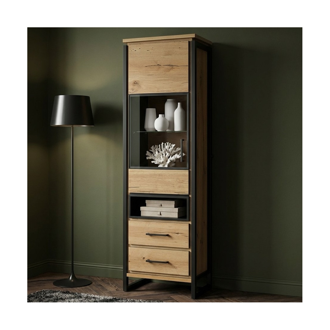 Adăugați o notă de eleganță și rafinament în casa dumneavoastră cu Vitrina Reno, un produs de mobilier excepțional, realizat cu atenție din Smoked Oak și finisat într-un negru elegant. Această vitrină reprezintă un punct central al designului interior și vă oferă o modalitate perfectă de a expune și proteja obiectele prețioase.