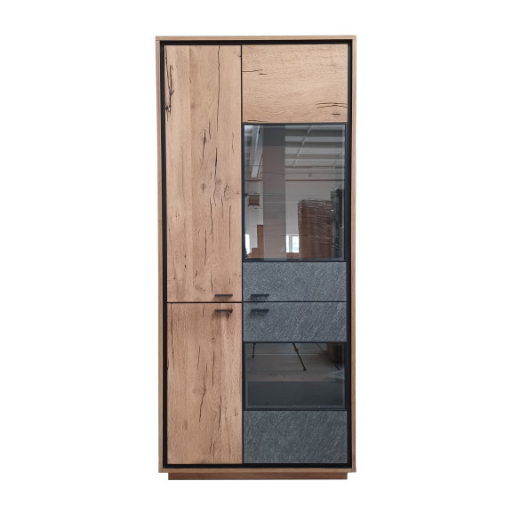 Vitrina Stone Cu 4 Usi Natur, Gri Si Negru, 86 Cm-Resigilat-01