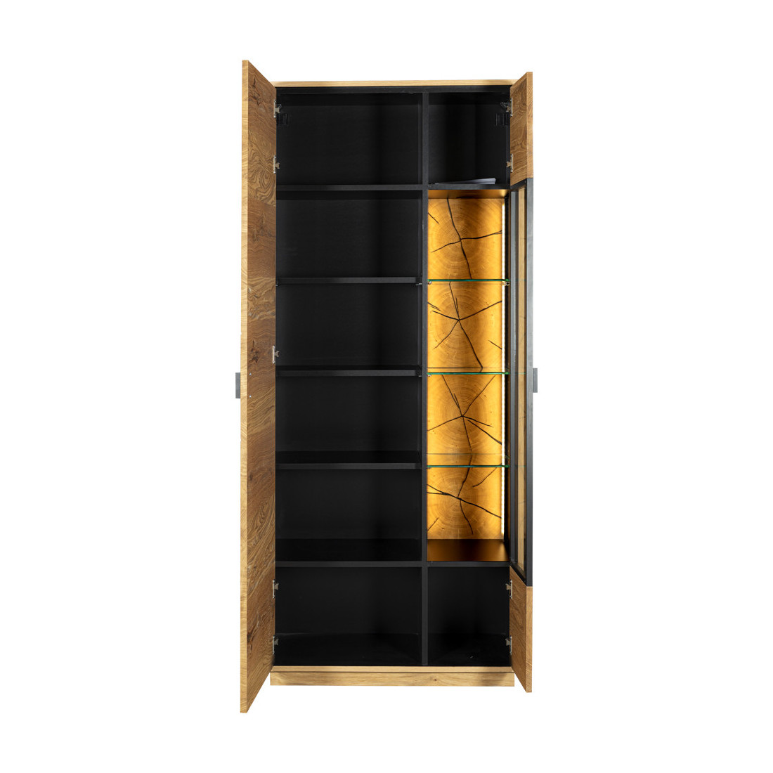 Vitrina Urbano Oak Cu 2 Usi, Stejar Rustic Si Negru, 85 Cm